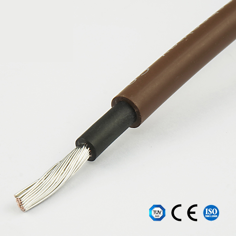 สายไฟฟ้าพลังแสงอาทิตย์สีน้ําตาลคุณภาพดีที่สุดที่สอดคล้องกับมาตรฐาน TUV EN50618 H1Z2Z2-K. มีตัวนําทองแดงกระป๋องขนาด 4 มม.