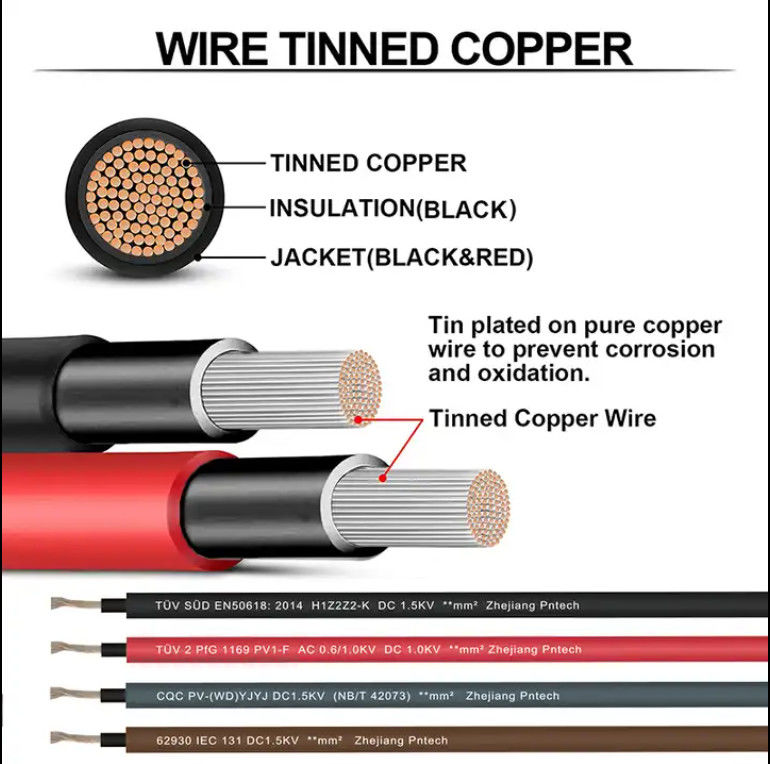 สายไฟฟ้าดวงอาทิตย์แบบ DC เป็นตัวเลือกหลักในการเชื่อมต่อส่วนประกอบในระบบไฟฟ้าดวงอาทิตย์แบบปัจจุบันสายไฟฟ้าพลังแสงอาทิตย์แบบ DC ถูกสร้างขึ้นเพื่อให้มีความสามารถและความน่าเชื่อถือสูงกว่าสายไฟฟ้ามีทั้งในแบบม้วนหรือกลอง มีความยาวถึง 100 เมตร ทําให้มันเป็นทางเลือกที่สมบูรณ์แบบสําหรับการใช้งานไฟฟ้าพลังแสงอาทิตย์ที่หลากหลายสายไฟฟ้าพลังแสงอาทิตย์แบบ DC เป็นทางออกที่สมบูรณ์แบบในการเชื่อมต่อส่วนประกอบในระบบไฟฟ้าพลังแสงอาทิตย์แบบ DC.